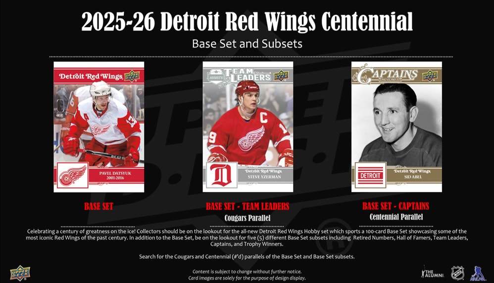 Celebrating a century of greatness on the ice! Collectors should be on the lookout for the all-new Detroit Red Wings Hobby set which sports a 100-card Base Set showcasing some of the most iconic Red Wings of the past century.