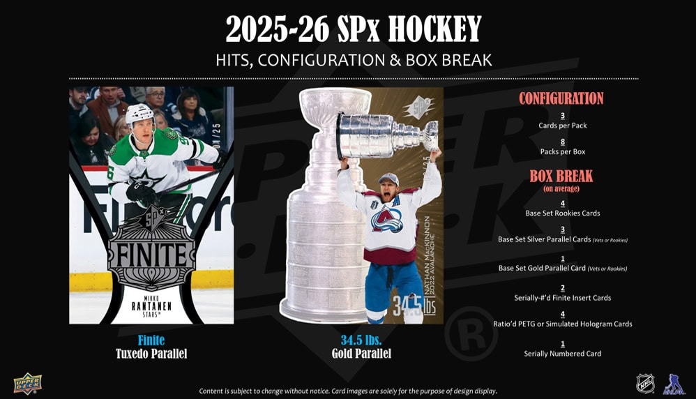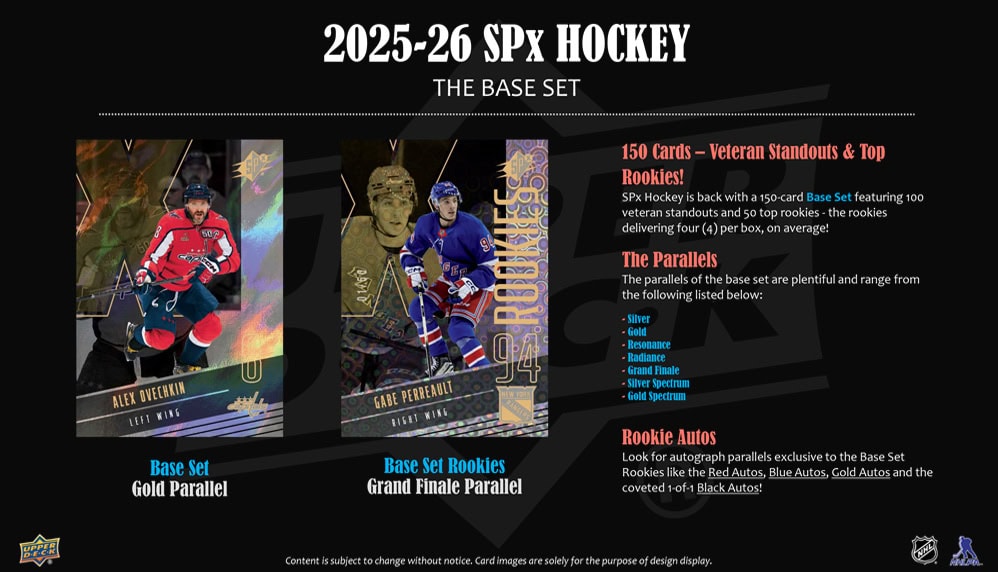 2025-26 SPx returns for another exciting season! Following the reconfiguration to a multi-pack product last season, this year builds on the momentum continuing to deliver an SPx product that invokes nostalgia for long-time collectors!