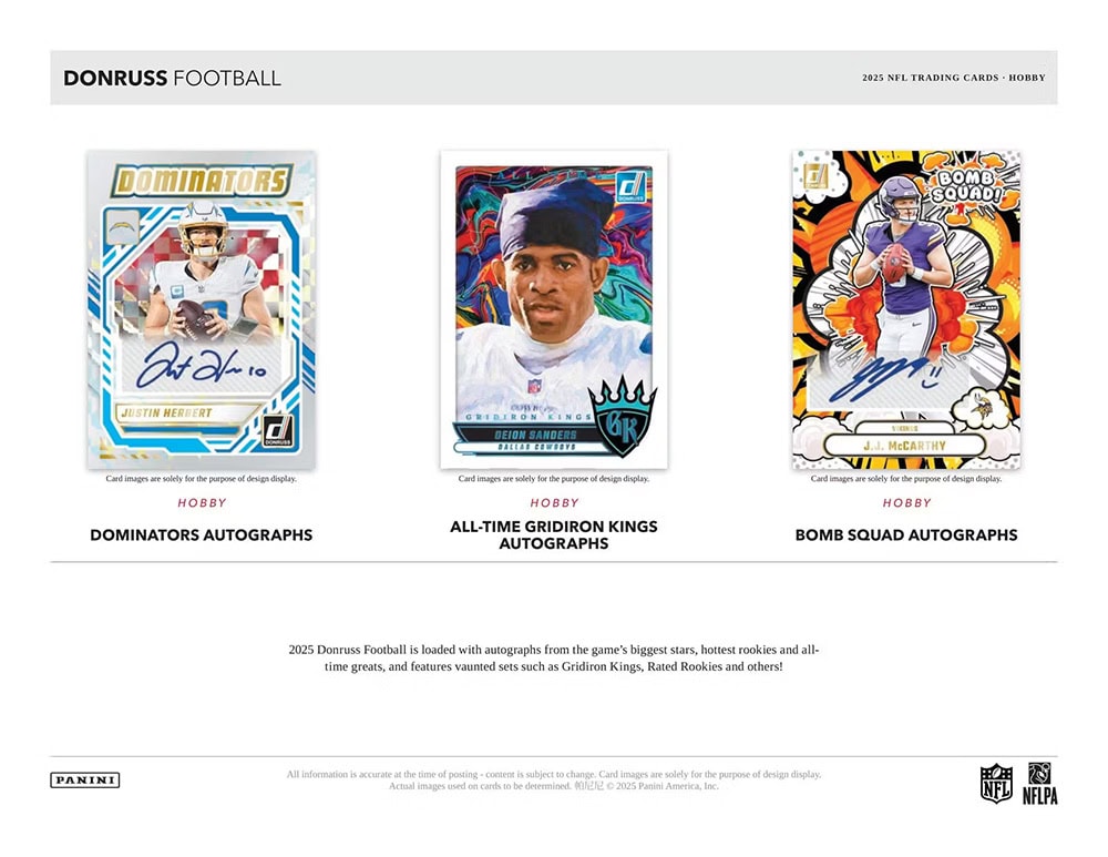 2025 Donruss Football is loaded with autographs from the game’s biggest stars, hottest rookies and all-time greats, and features vaunted sets such as Gridiron Kings, Rated Rookies and many more.