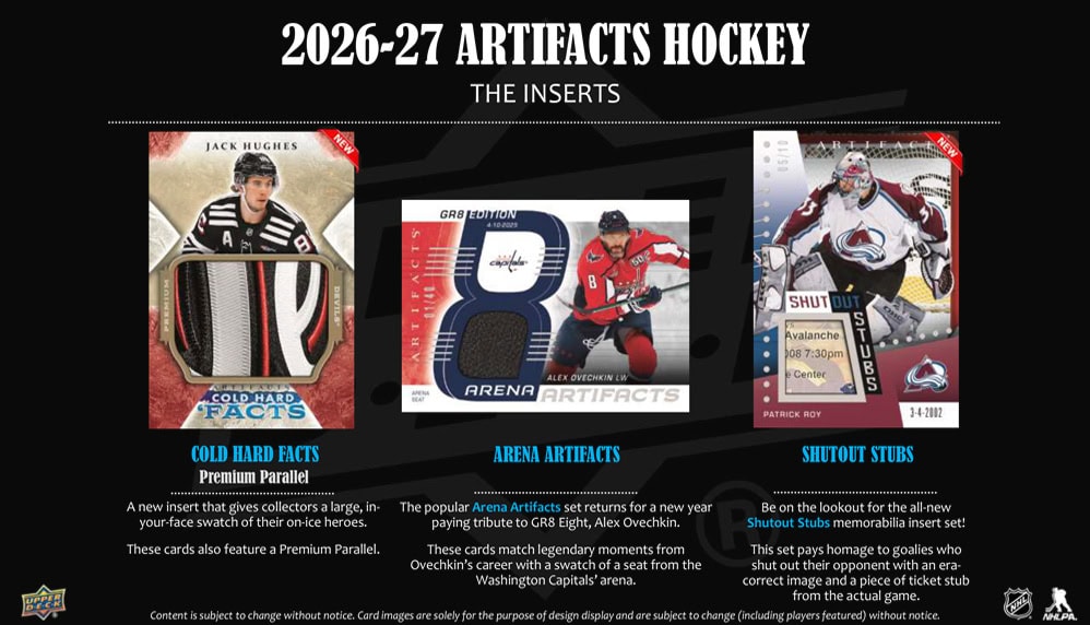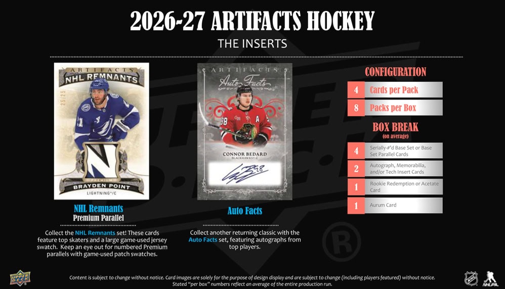 Each 2026-27 Upper Deck Artifacts Hockey Hobby Box contains 8 packs with 4 cards in each pack!